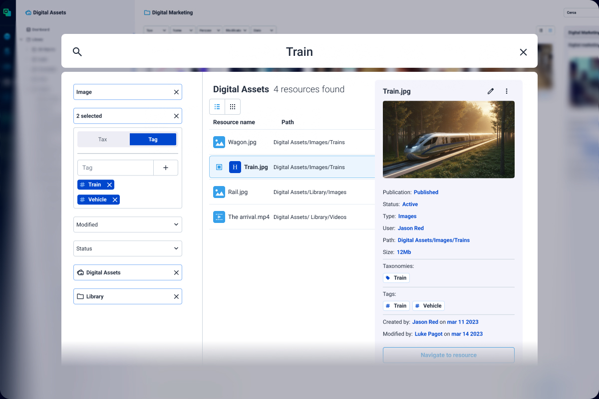 Find any asset instantly with smart folders, tags, and taxonomies.