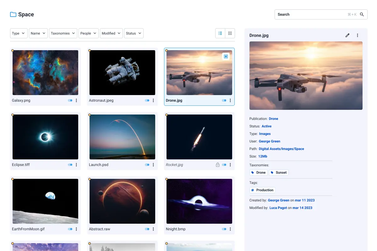 Effective asset management is all about control. Assign roles, set detailed access rights, and oversee publications, ensuring every asset is managed with precision and safeguarded against unauthorized use.